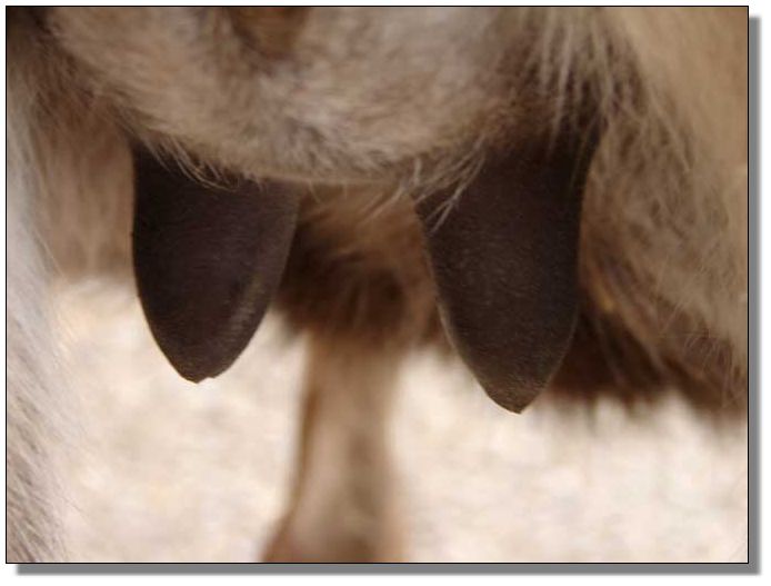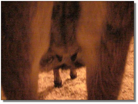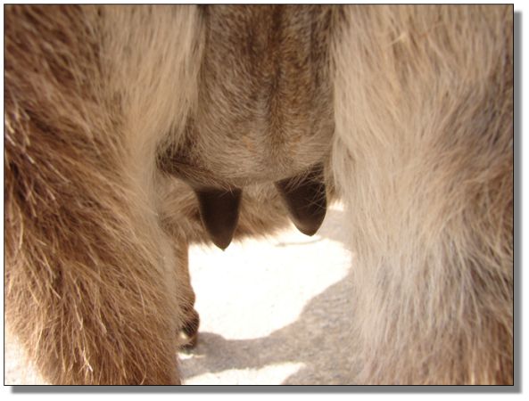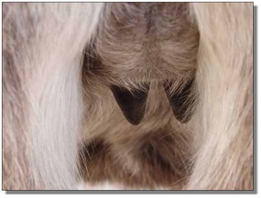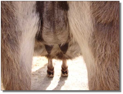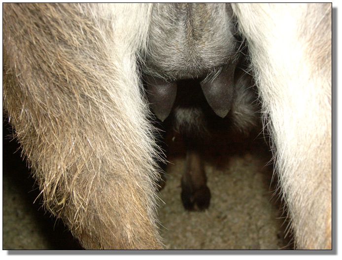 between the teats. |