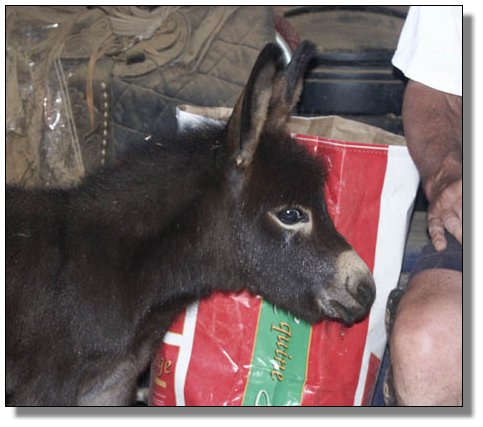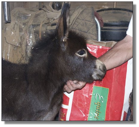 Sir was foaled from what we thought was a barren jennet...hence his name, "Sir Prize." He is a dark, dark brown and very stocky. More information to be posted soon. He just arrived here and I have not gotten to know him yet.
