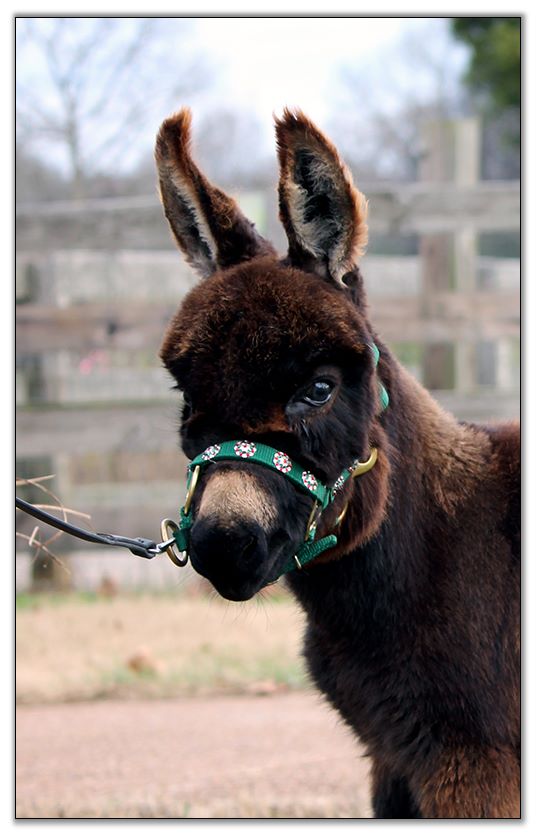 She is finally here. My long awaited foal out of Elvira and sired by Rojo...two champion donkeys. She is gorgeous and more than I could have ever hoped for. We have sold our red herd sire to reduce our herd to a more manageable number so we are now offering Farrah for sale. You won't be disappointed in her. She is super friendly and up to date on all vaccinations including rabies, west nile, eastern/western encephalitis, rhino, influenza and botulism plus de-worming. Her hooves will be freshly trimmed before she leaves. Updated photos will be posted soon as the photos and videos above were taken of her shortly after she was born.