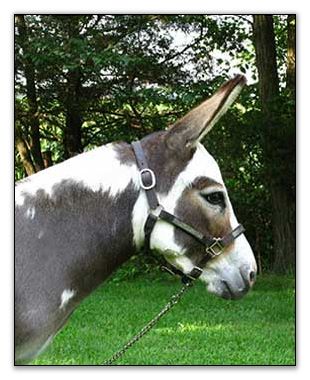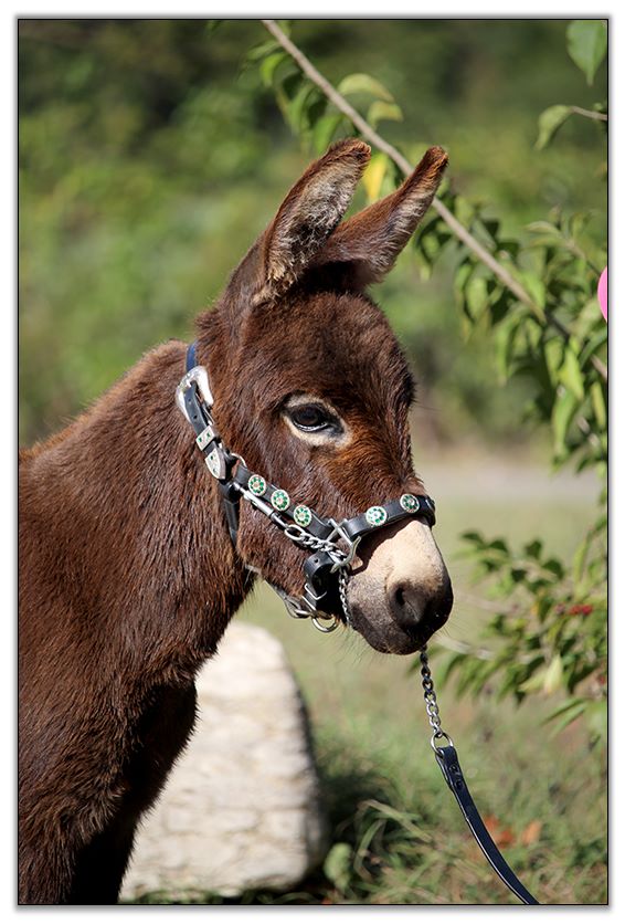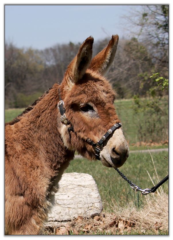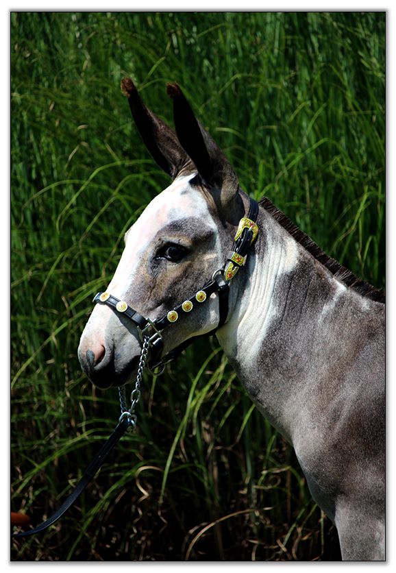 Beretta is very intelligent and eager to learn and could one day make a top notch halter and performance gelding if you desired to spend the time with him. He absolutely loves attention. He is very easy to care for and does all his business in one neat pile. He can be pastured with foals or jennets. He gets along with them all. As you can see in the video he has a slight overbite but it does not affect him in any way. He will just need to have his teeth floated once per year like all donkeys need.