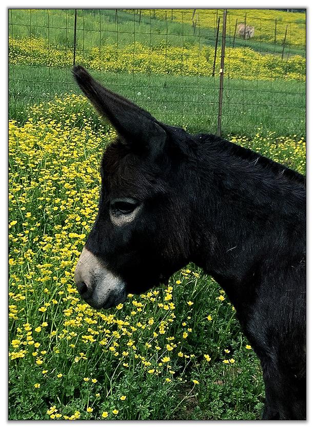 We could not resist purchasing this adorable girl from Castlewood Farm when they stopped breeding and raising donkeys. Her sire is our own Donkette Korral Kryptonite. We will be taking photos and videos as soon as my helper is back in good health. Annie came with her lifelong best friend and half-sister, Castlewood's Black Gold Gemini. These two are joined at the hip and will not be separated.