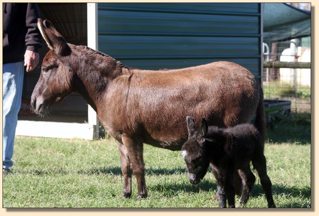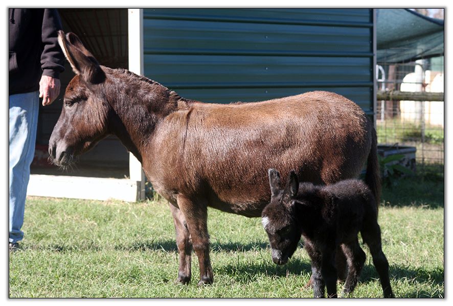 1) HHAA Tiny Dancer, Dark Spotted Jennet, DOB 7/20/10 - DOD 8/02/10 (Tiny Dancer had badly contracted tendons that the vets were unable to repair during her operation. They suggested that the humane thing to do was to put her down. It was beyond heartbreaking.) - (Sire: Napoleon); 2) HHAA Dance Much? (Tango), 8/02/13, Black w/cross Jack w/NLP, (Sire: Jealous Much);